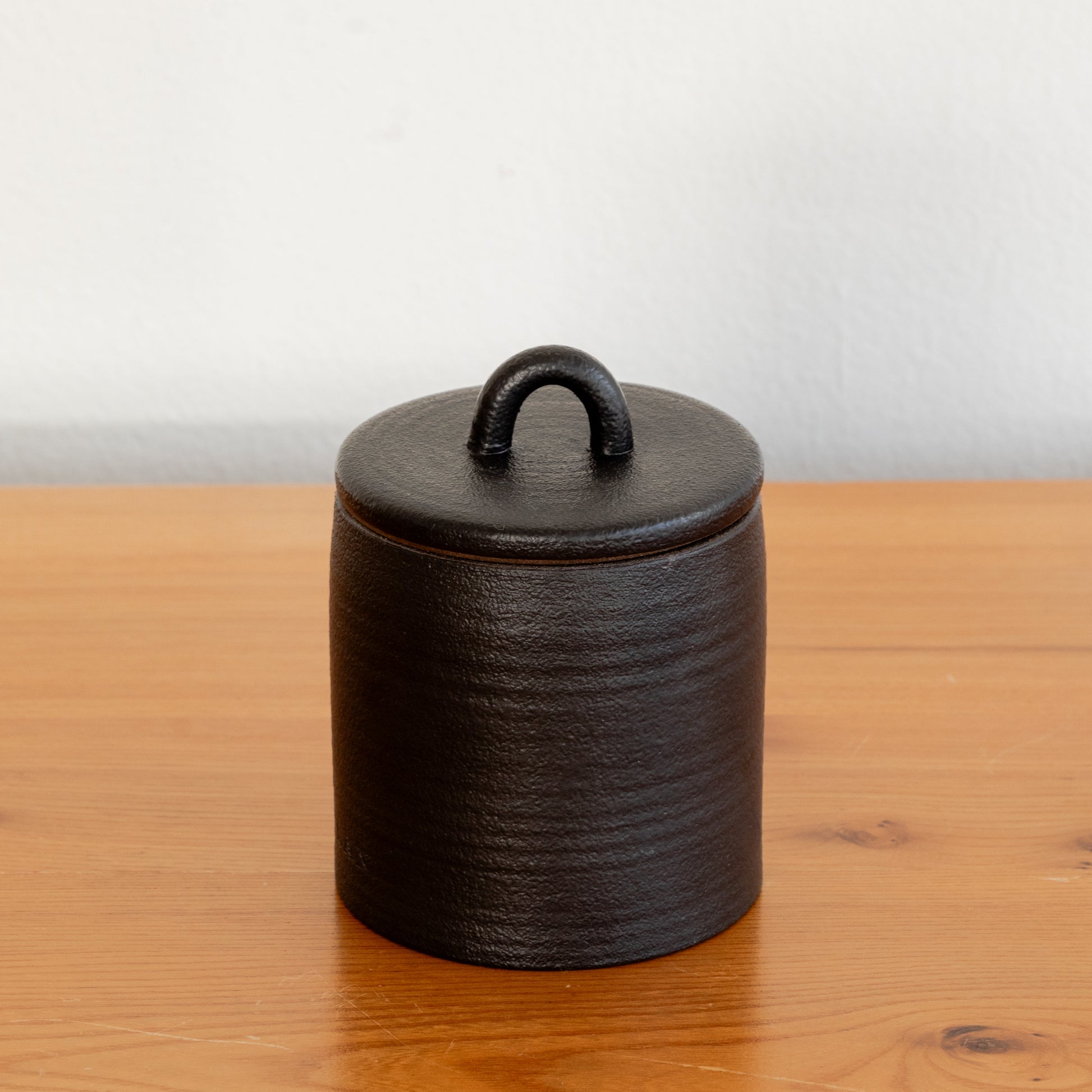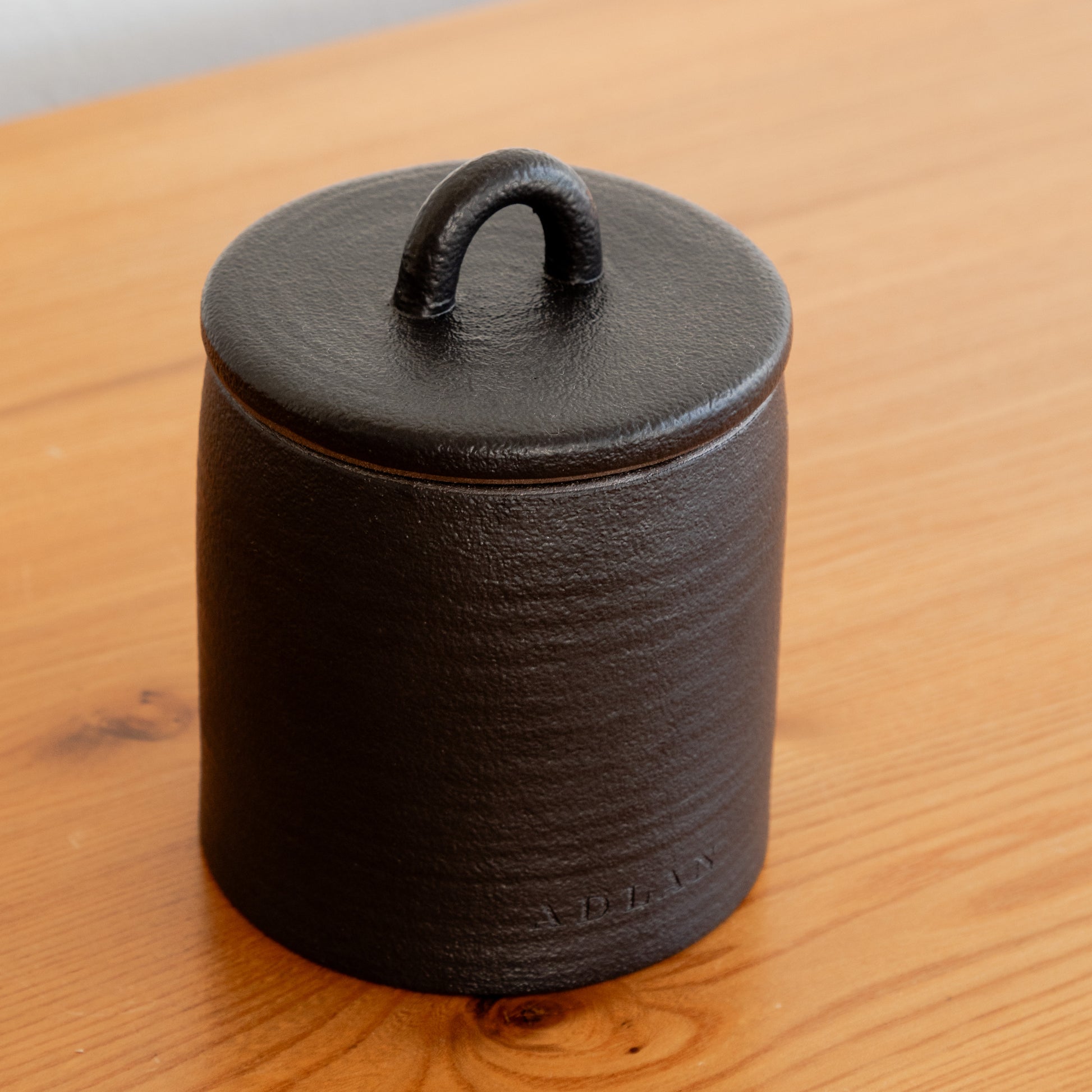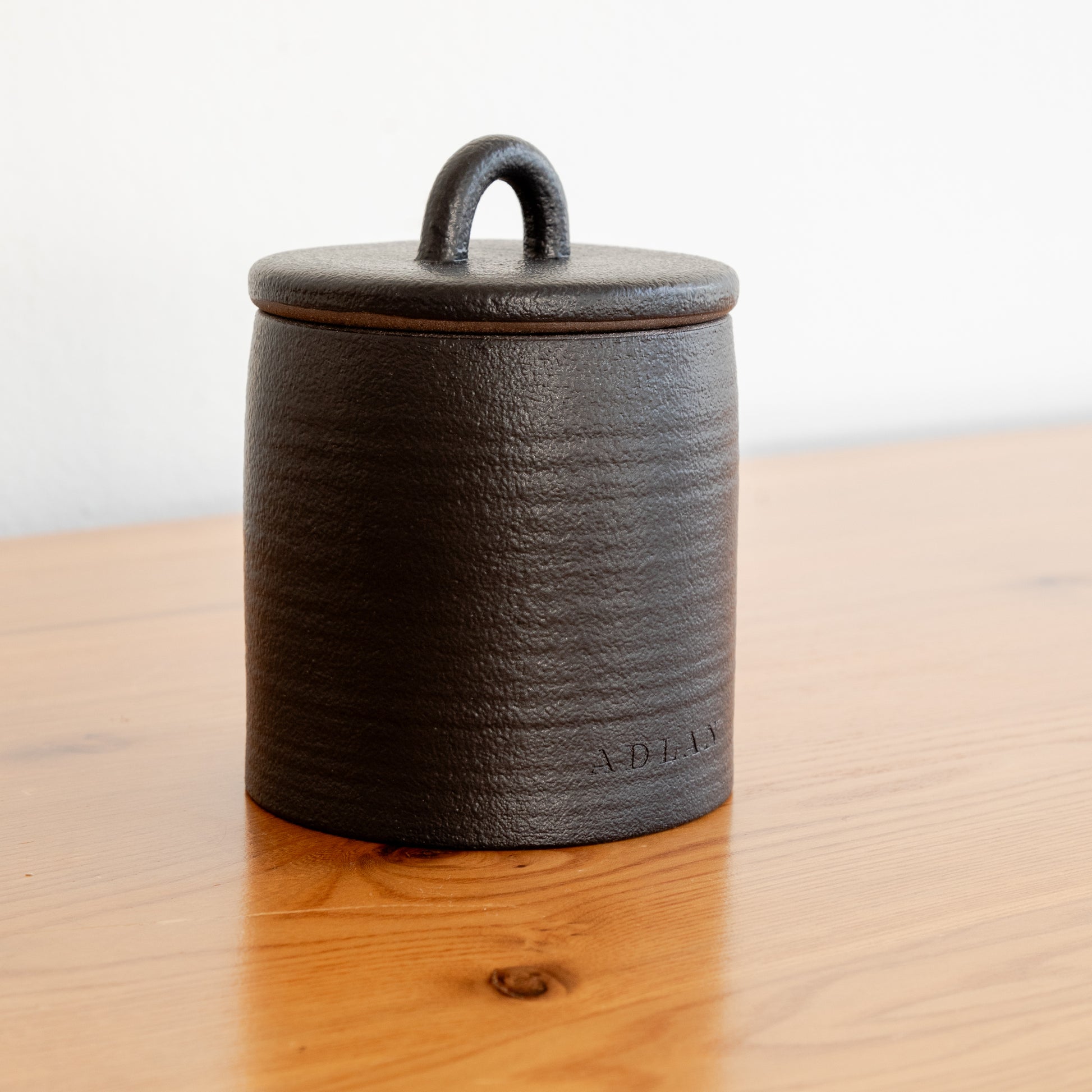 Hand poured coconut wax candle in a lidded graphite stoneware vessel, 290 grams.