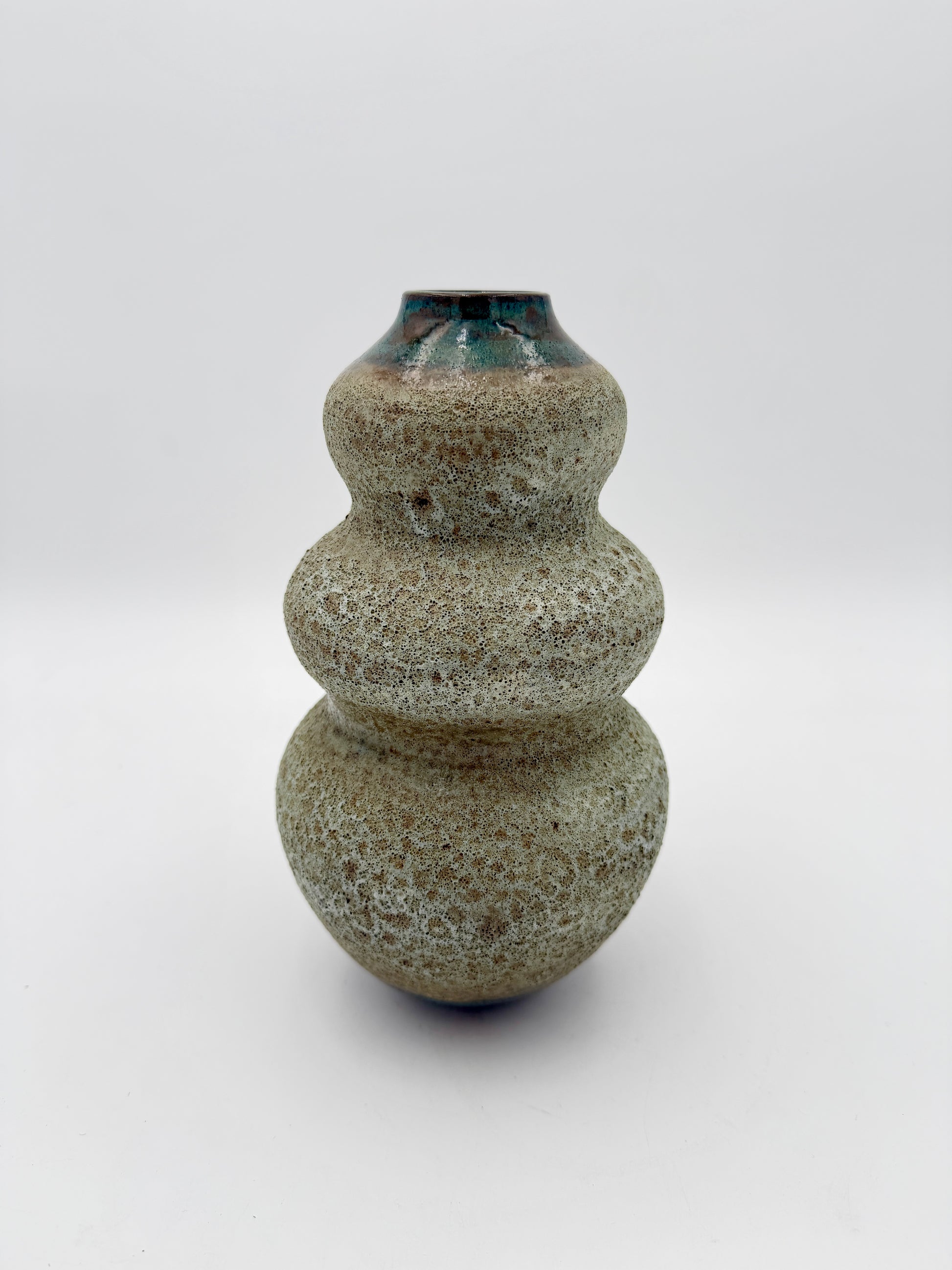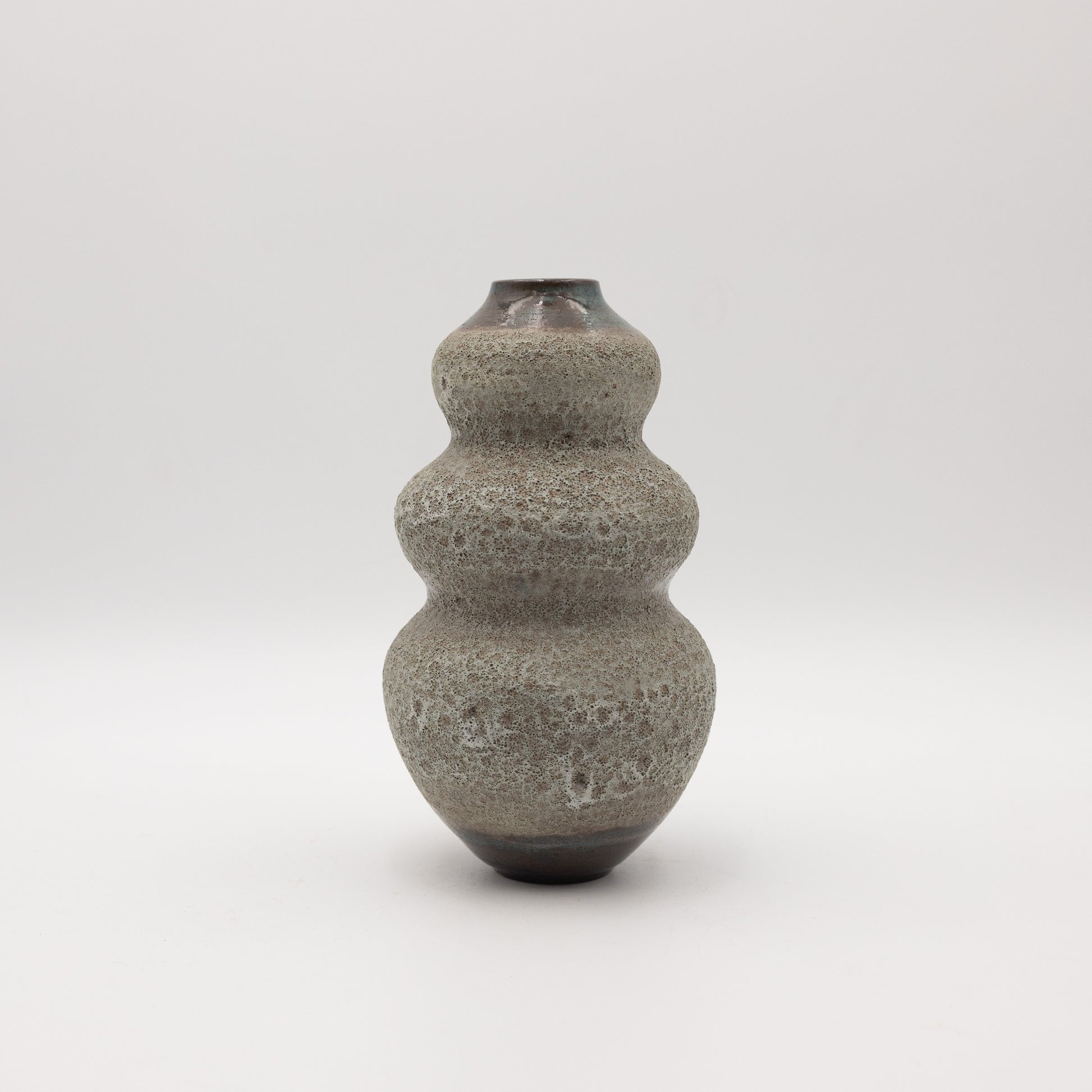 Hand thrown stoneware vessel in a textural frost glaze with blue undertones by Los Angeles artist, Lukas Weyandt of Alikimia Stoneware.