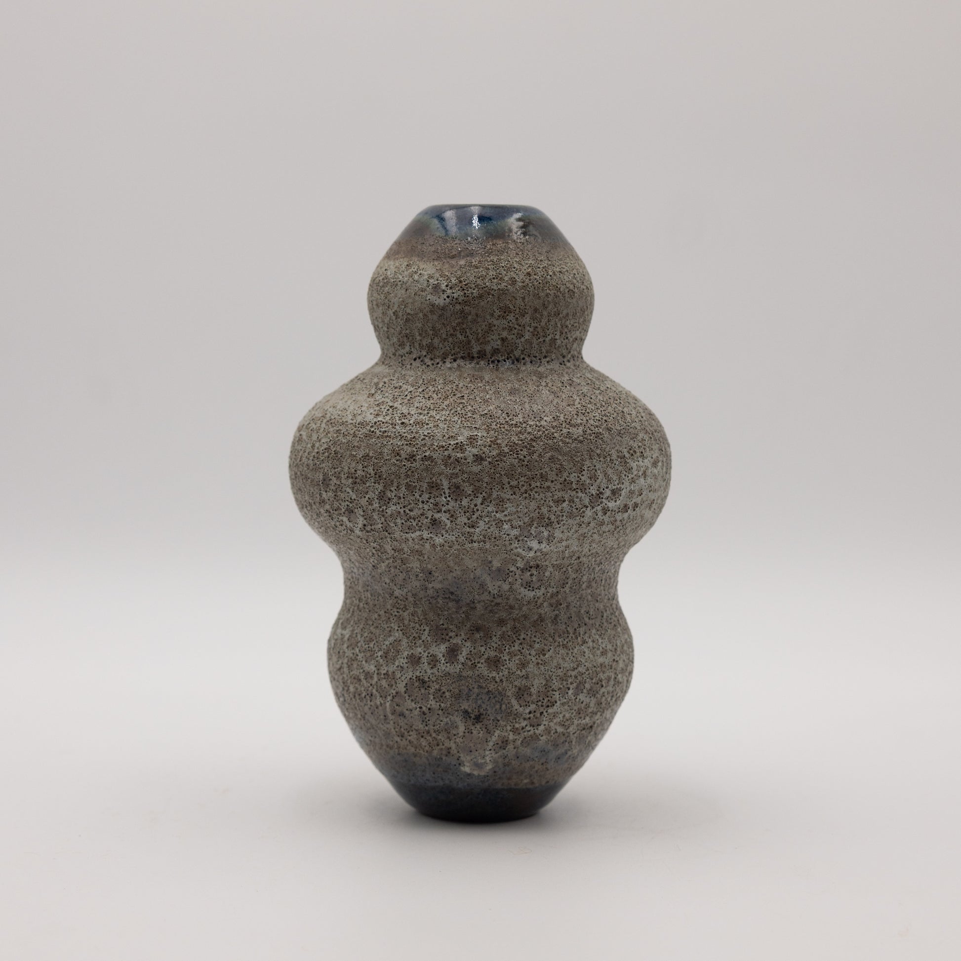 Hand thrown stoneware vessel in a textural frost glaze with blue undertones by Los Angeles artist, Lukas Weyandt of Alikimia Stoneware.