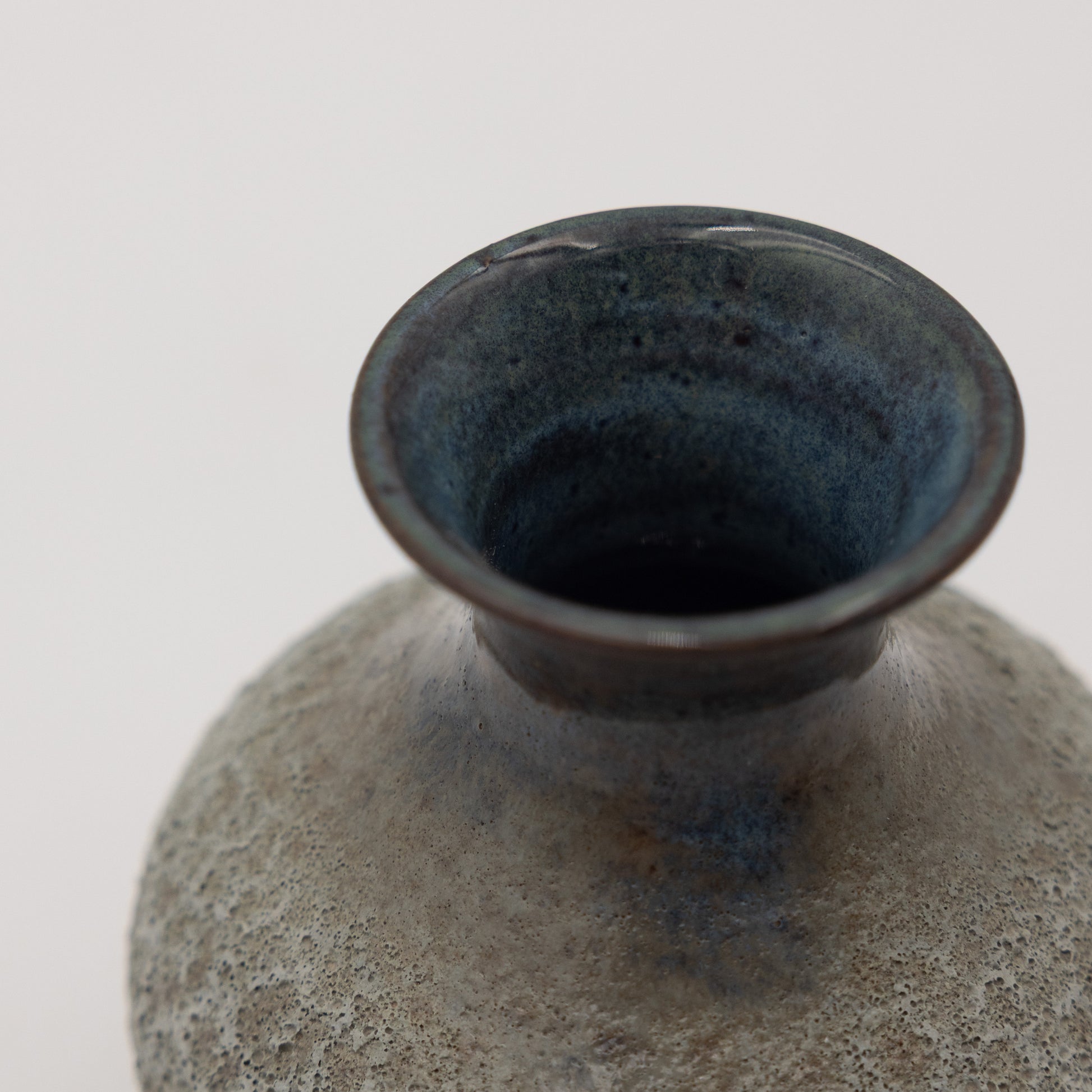Hand thrown stoneware vessel in a textural frost glaze with blue undertones by Los Angeles artist, Lukas Weyandt of Alikimia Stoneware.