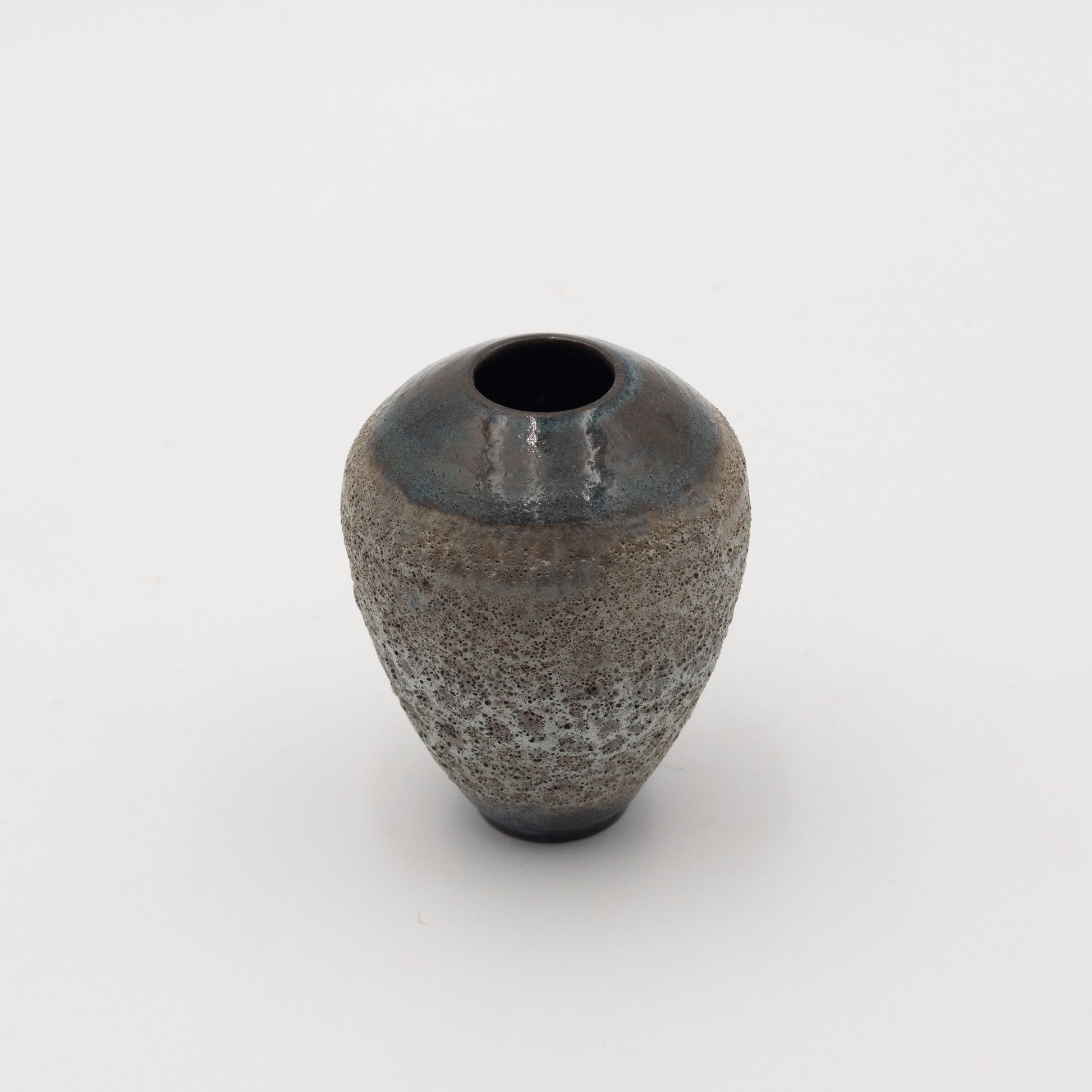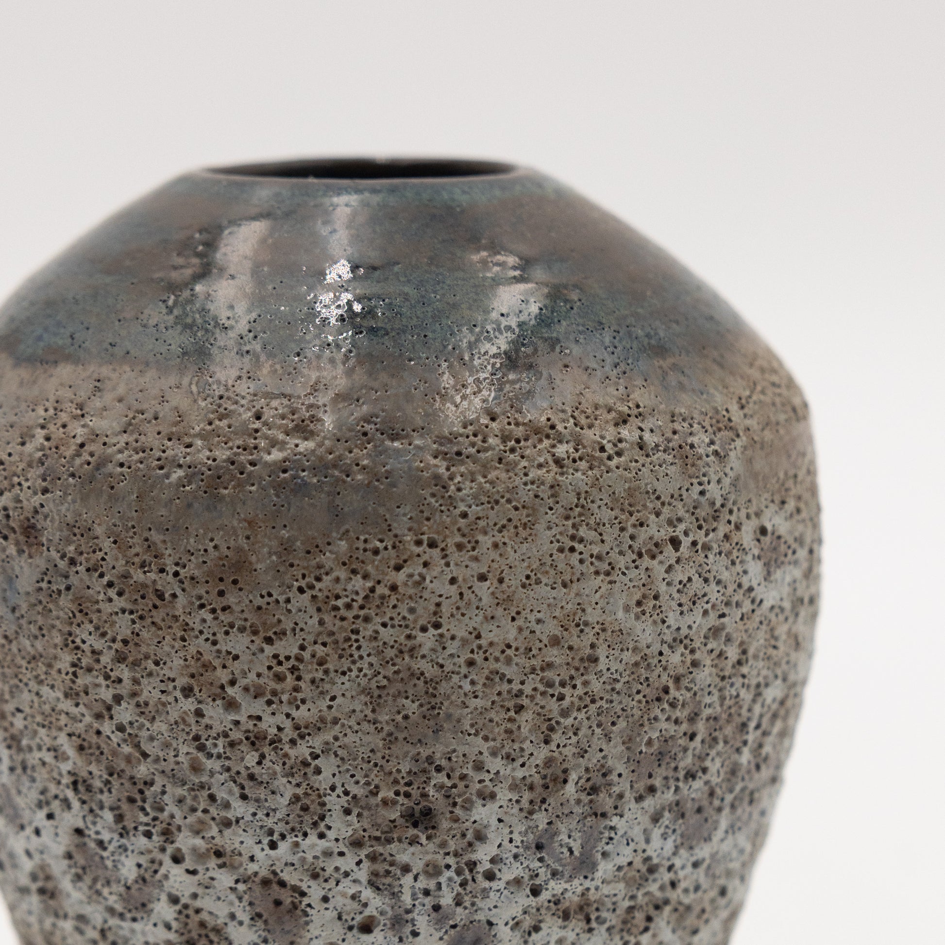 Hand thrown stoneware vessel in a textural frost glaze with blue undertones by Los Angeles artist, Lukas Weyandt of Alikimia Stoneware.