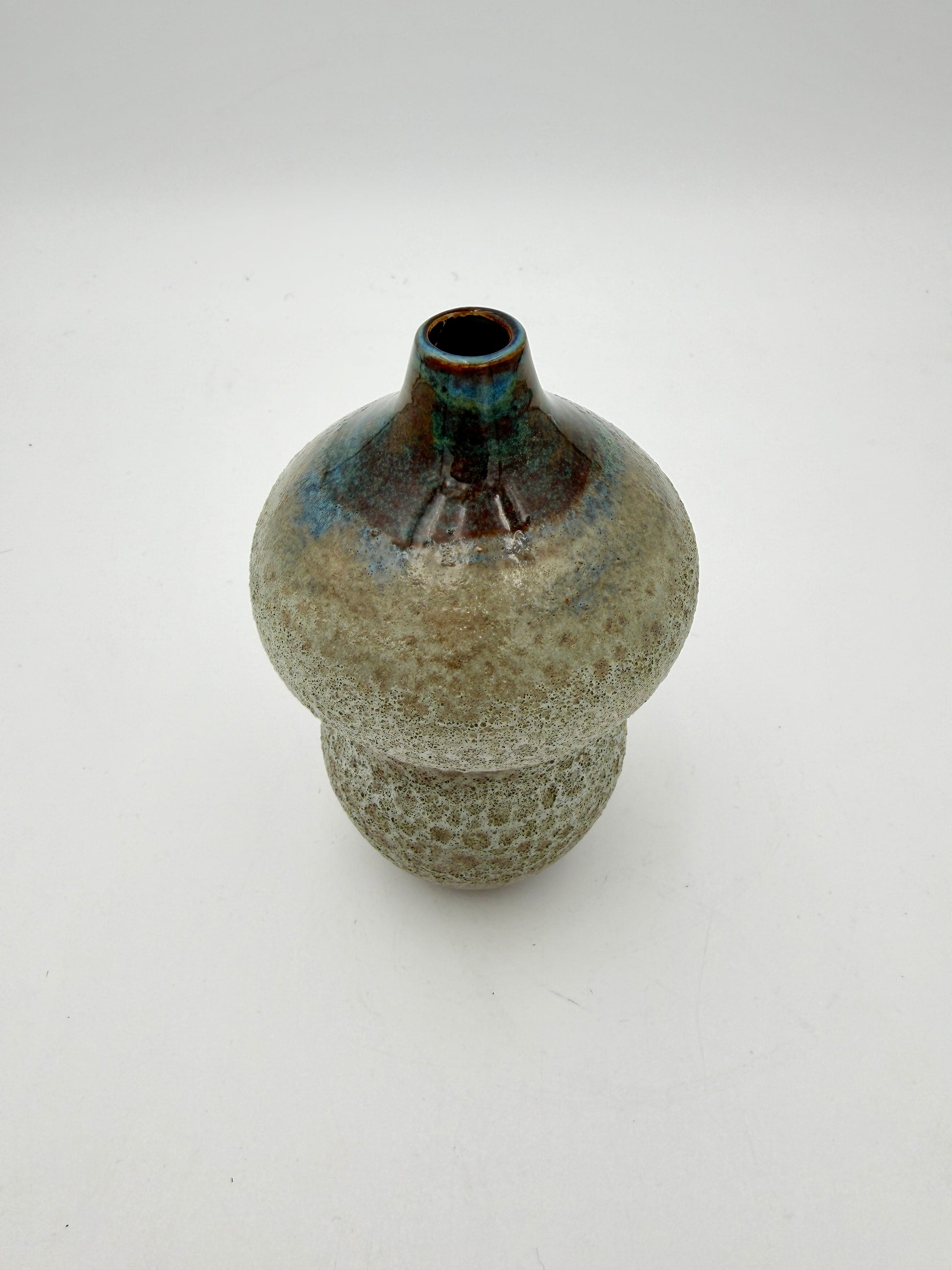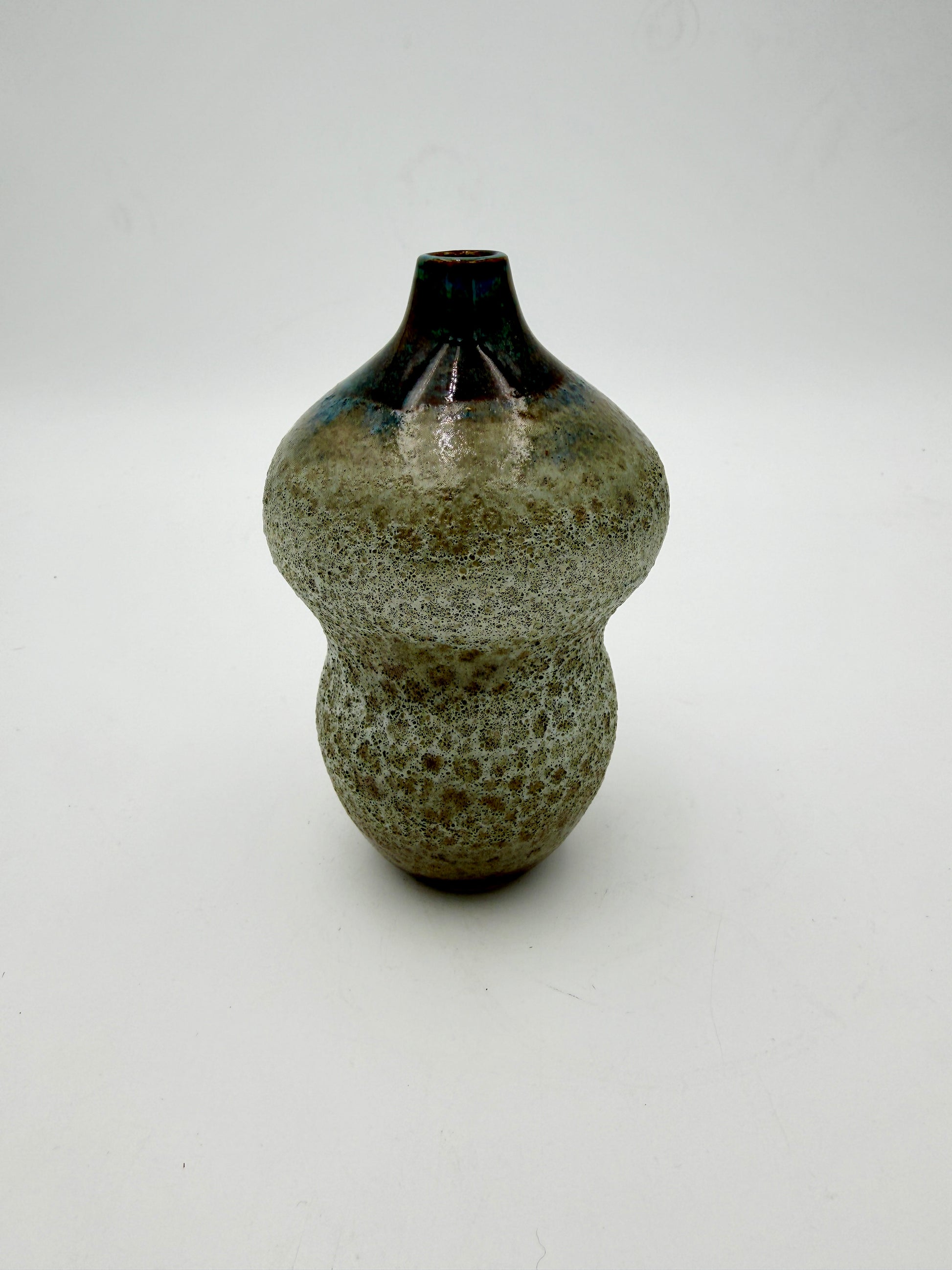 Hand thrown stoneware vessel in a textural frost glaze with blue undertones by Los Angeles artist, Lukas Weyandt of Alikimia Stoneware.