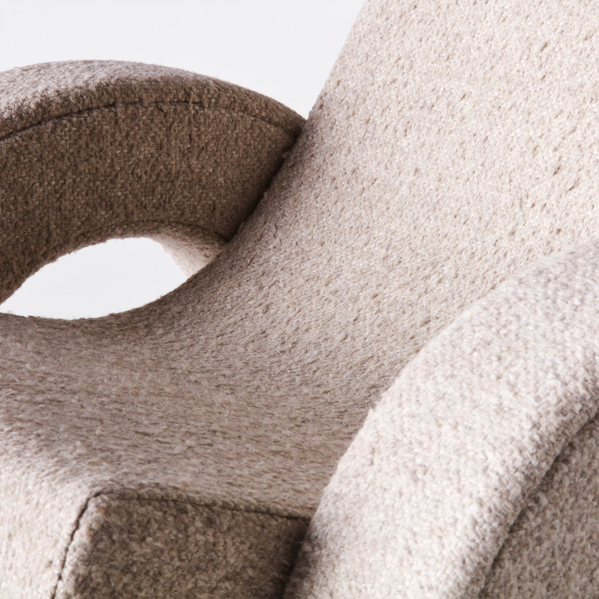 Arco Lounge Chair Boucle Natural is an armchair characterized by its arched legs, a design element that has become typical for many of Dusty Deco’s design. The armchair was at first handcrafted in southern Sweden by the long-standing furniture manufacturer O.H Sjögren. Its frame is made of beech and plywood while the seat is made of nozag springs. The structure is covered with different layers of foam for good comfort. In this version, the Arco Lounge Chair is covered with a natural-coloured boucle fabric.