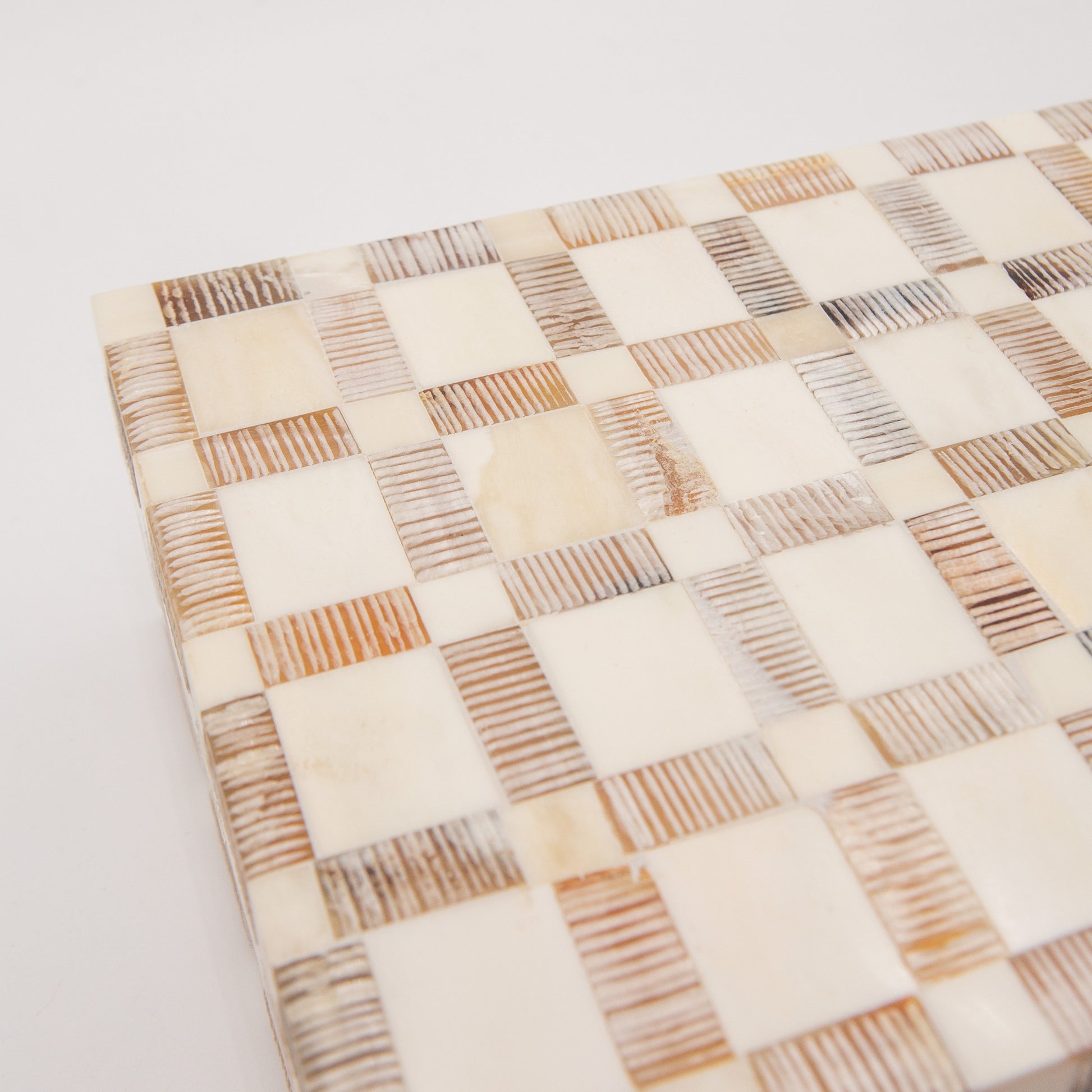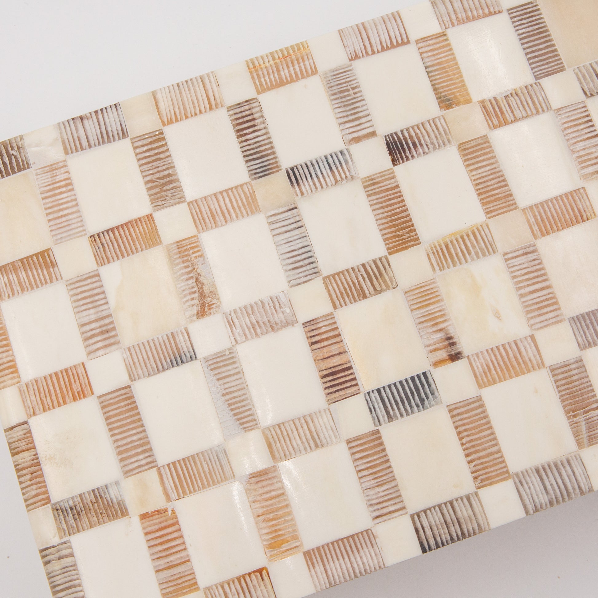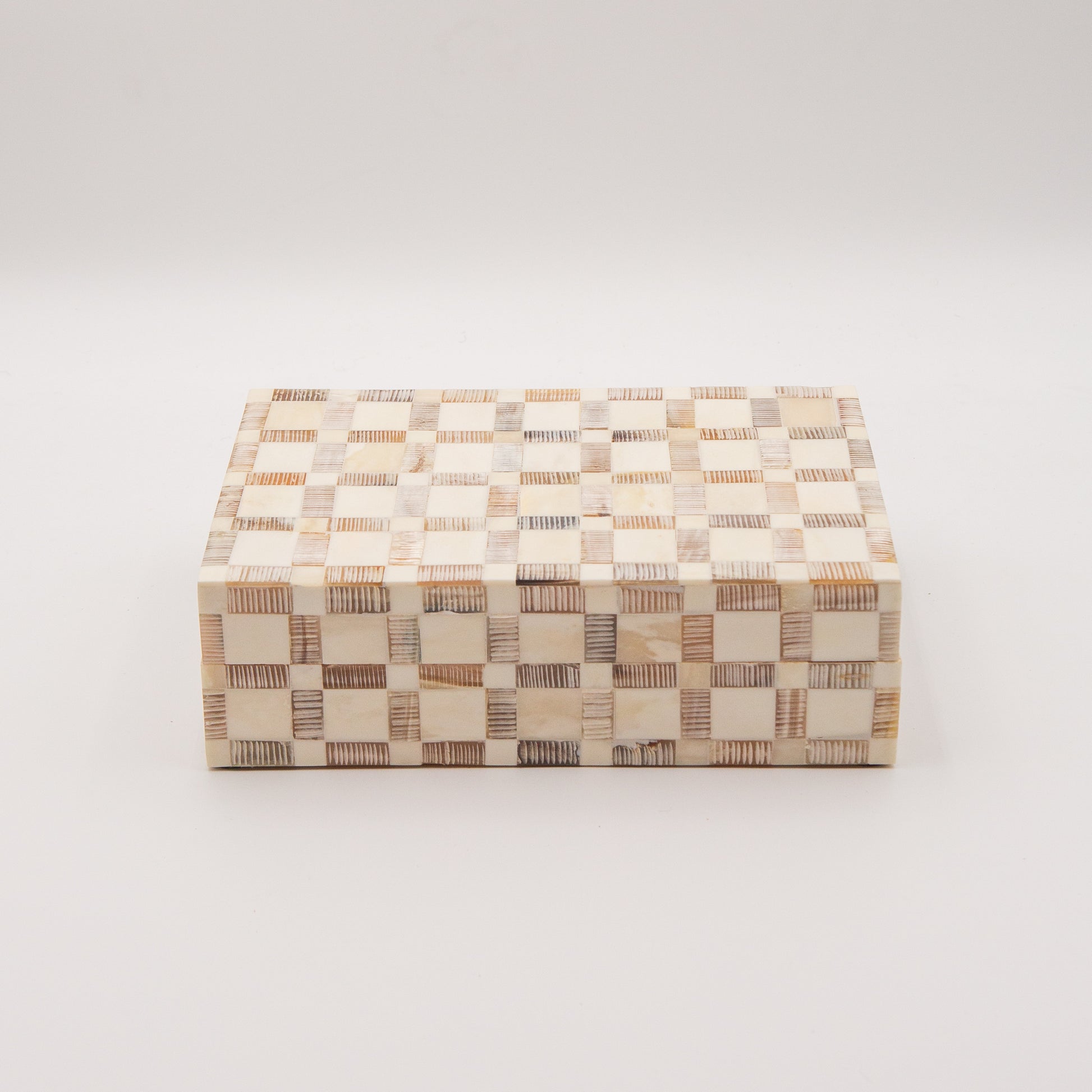 Ivory and grey bone checkered pattern inlay decorative lidded box, handmade in the Valley of the Himalayas.