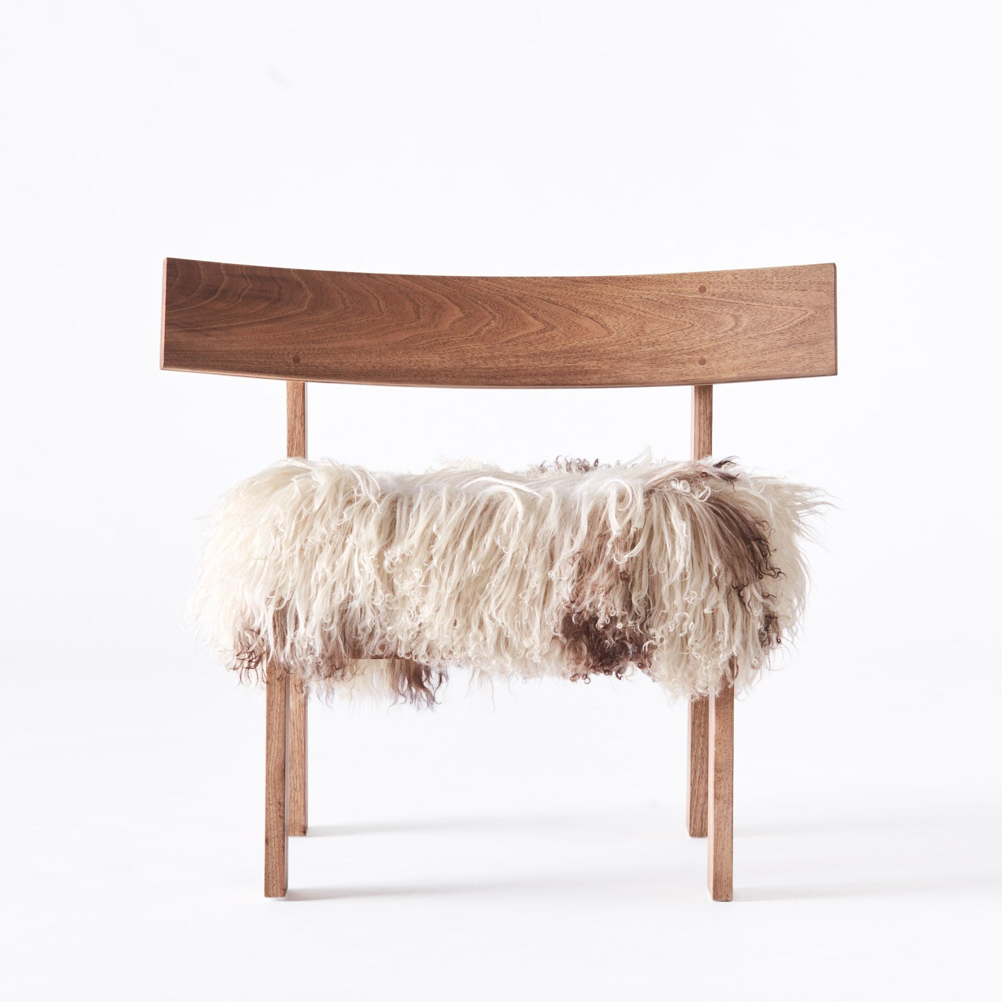 Easy Chair is the result of a collaboration between Niklas Runesson and Dusty Deco. Runesson, an autodidact artist, designer and carpenter has at first crafted this chair in his workshop in Stockholm. Made from solid walnut with a seat upholstered in sheepskin.