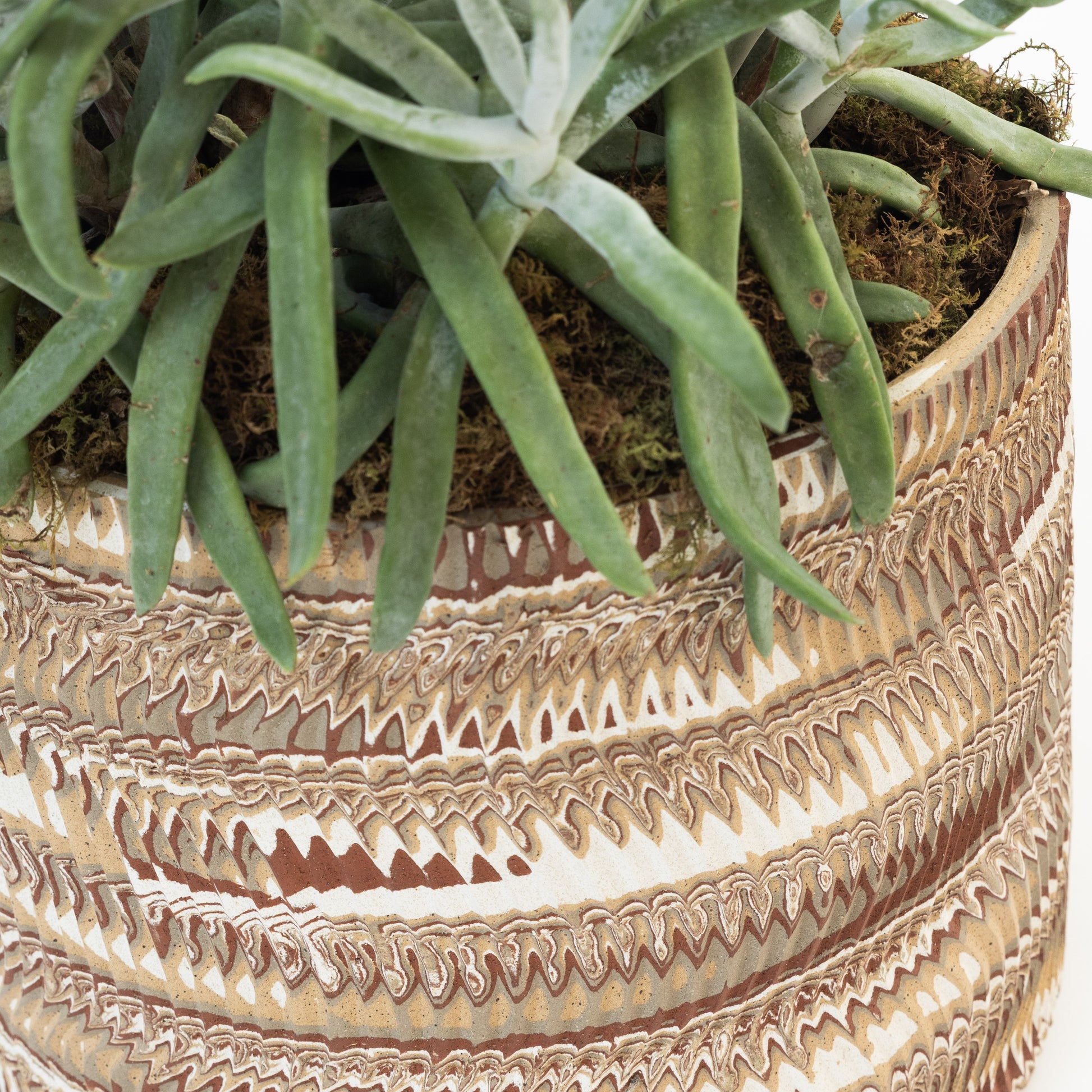 Unique handmade small Mongi cylindrical planter made of textured marbled clay in bespoke pigments, by Los Angeles artist, Henry Kim of Hyunuko Studio.