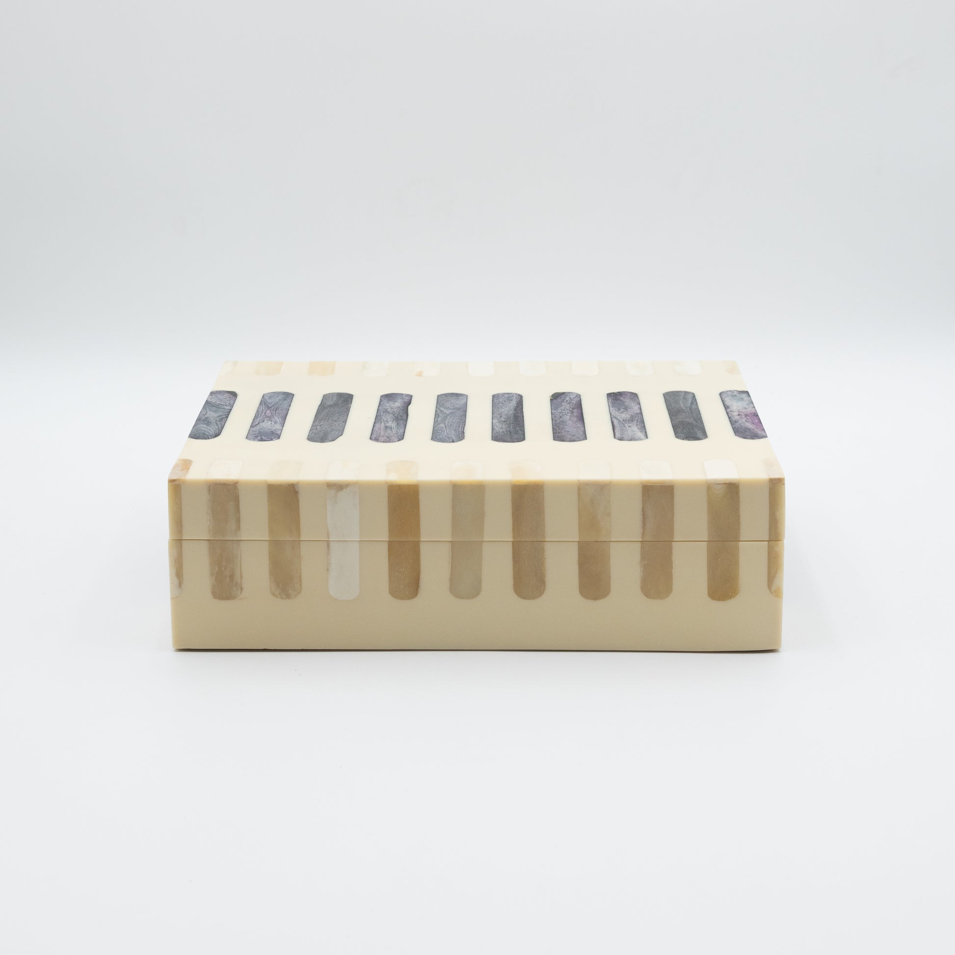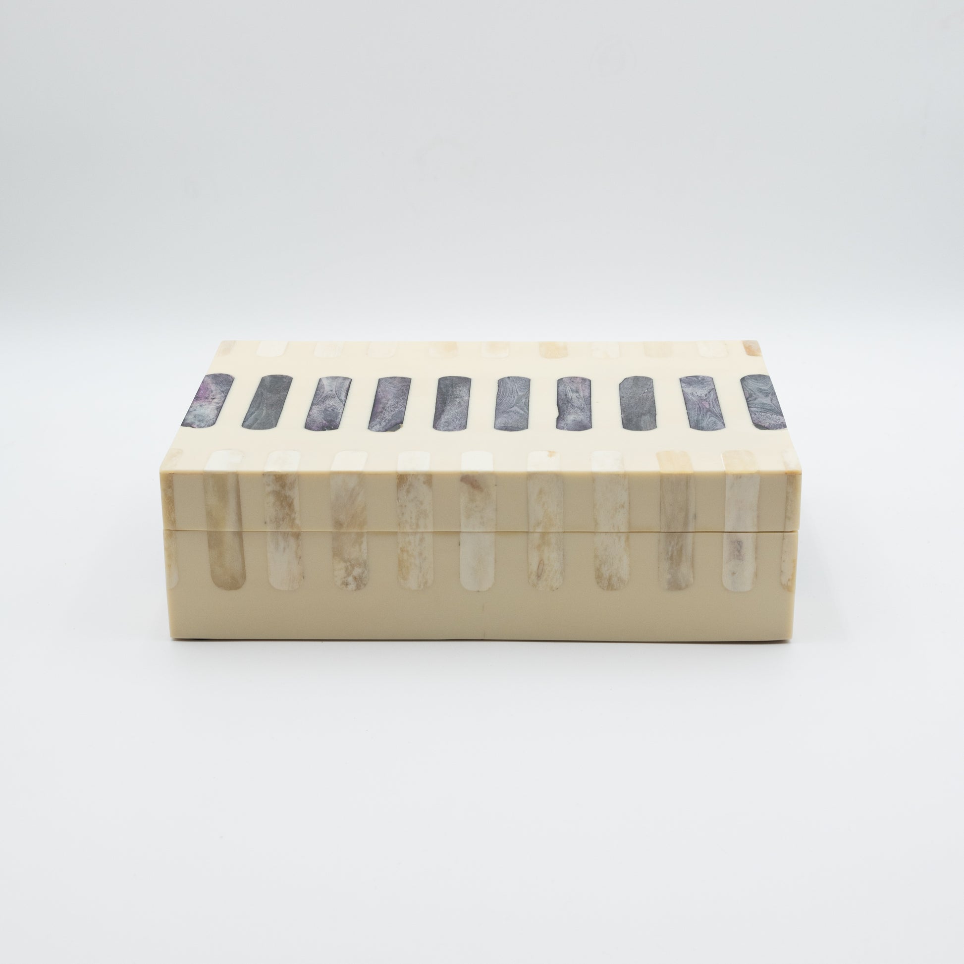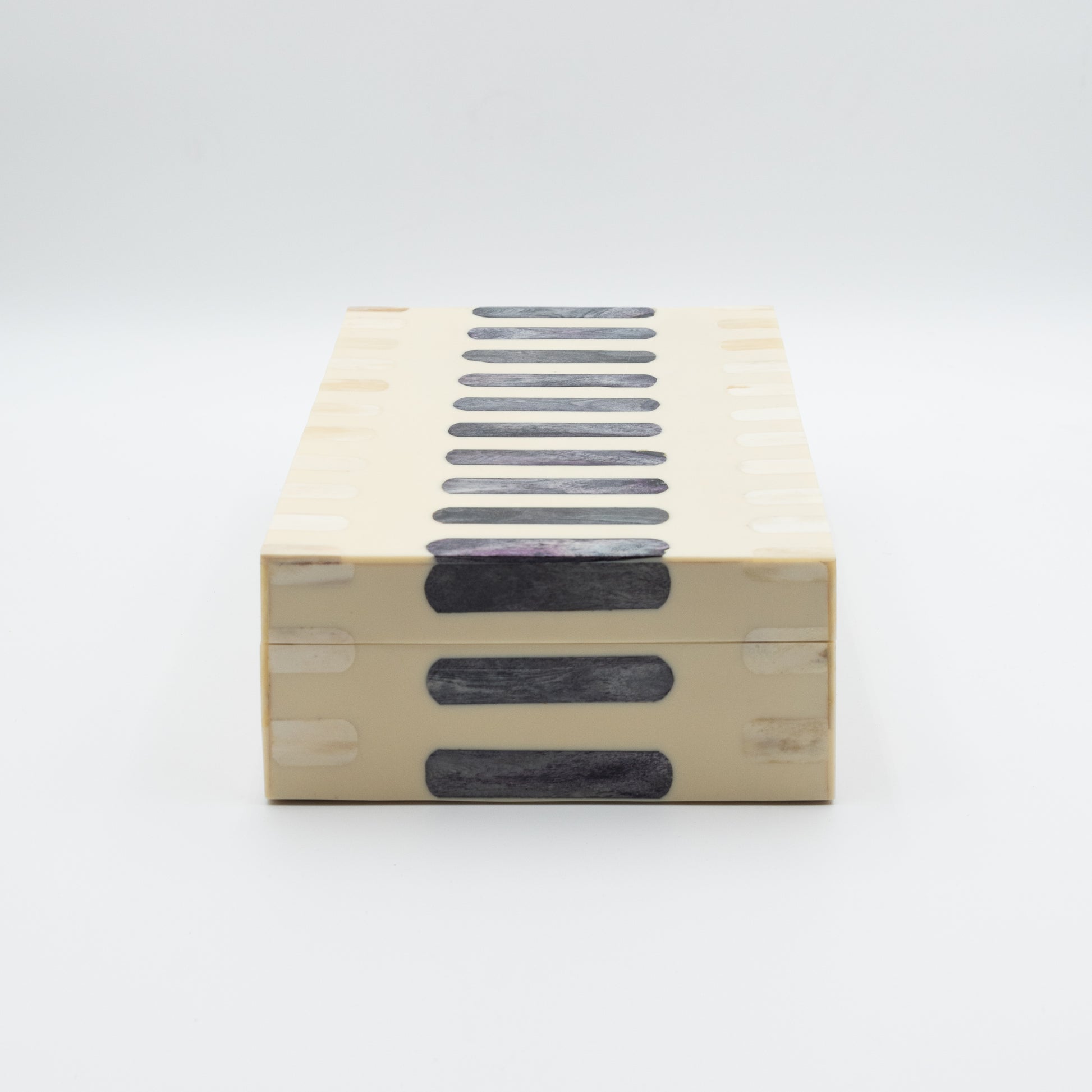 Dark gray and ivory bone inlay decorative lidded box, handmade in the Valley of Himalayas.