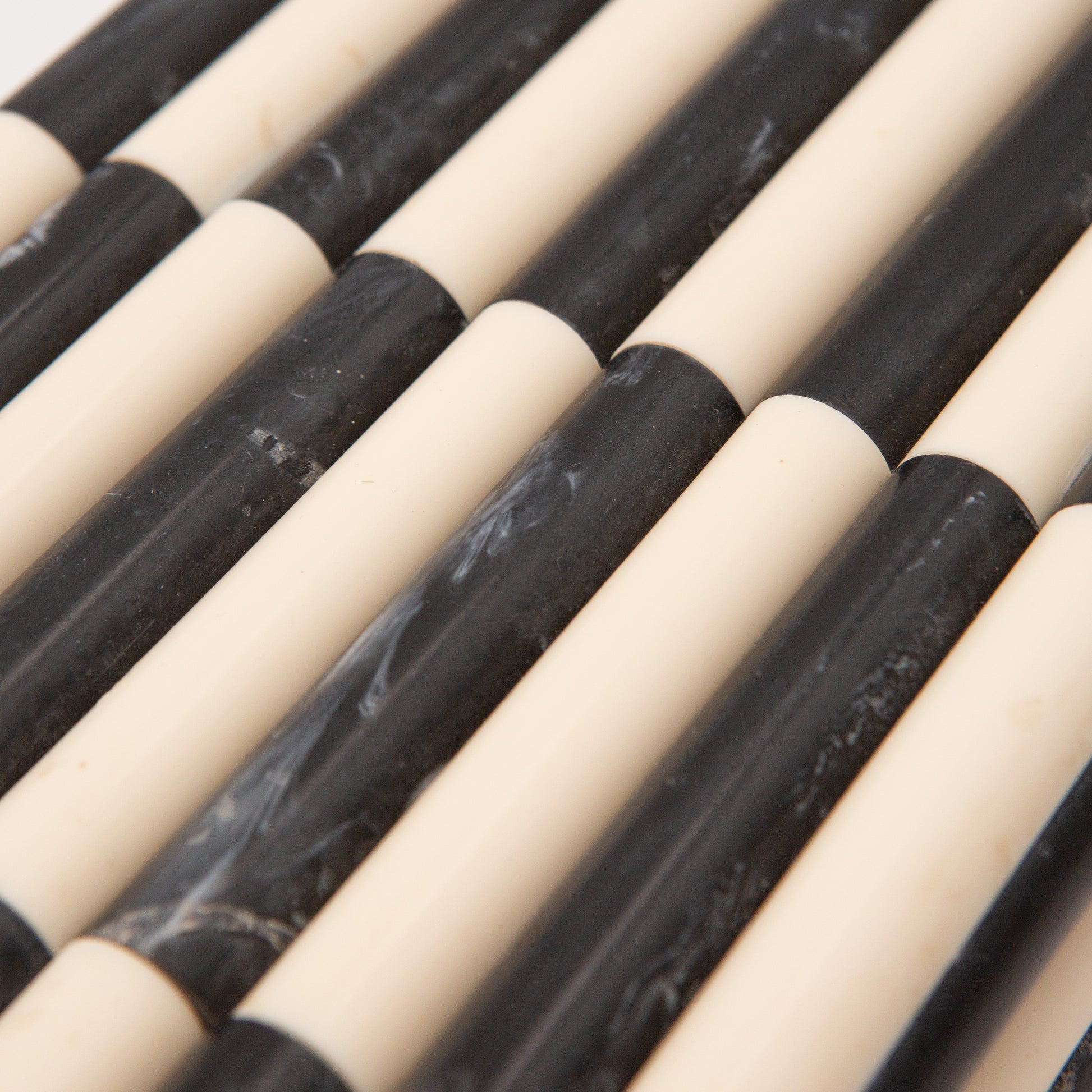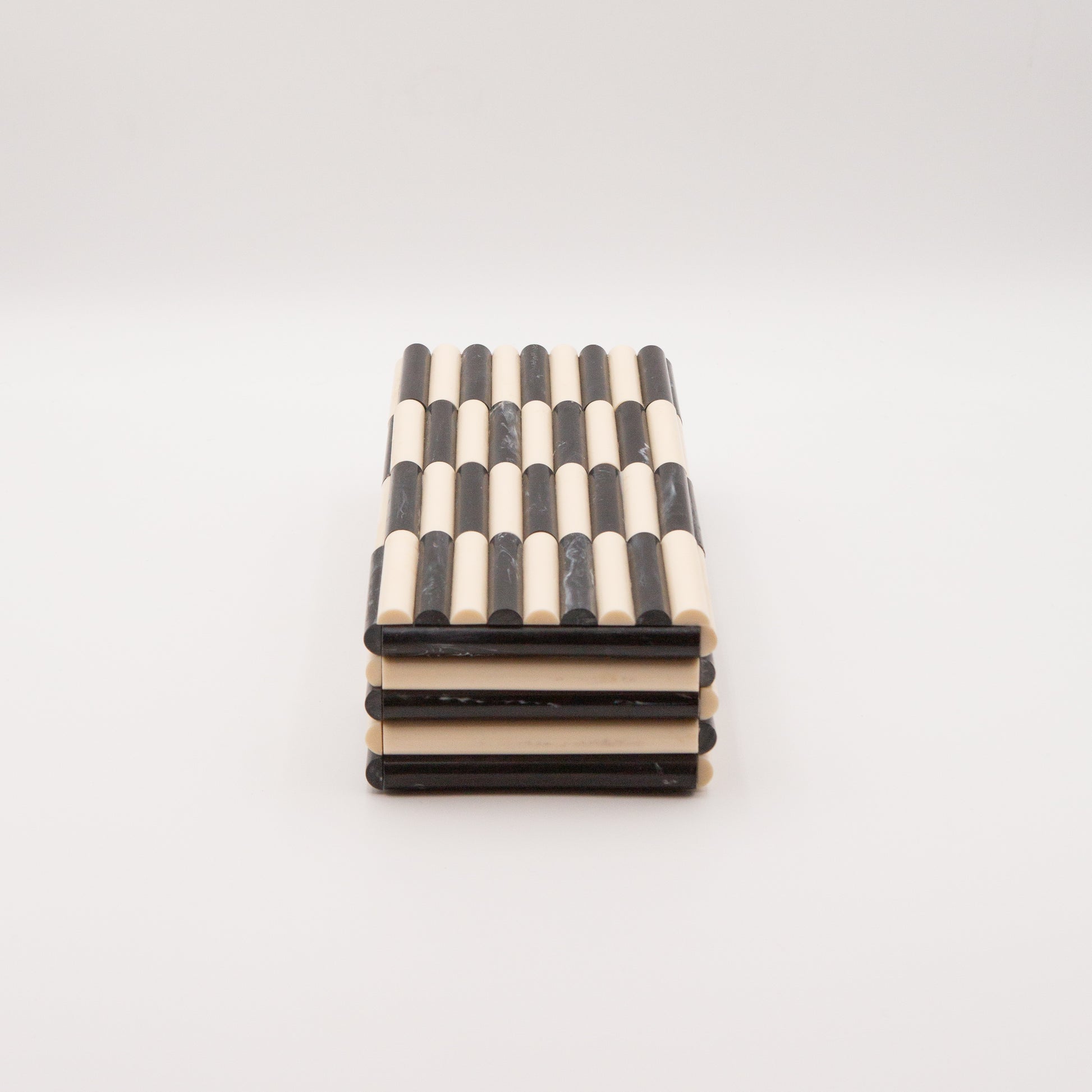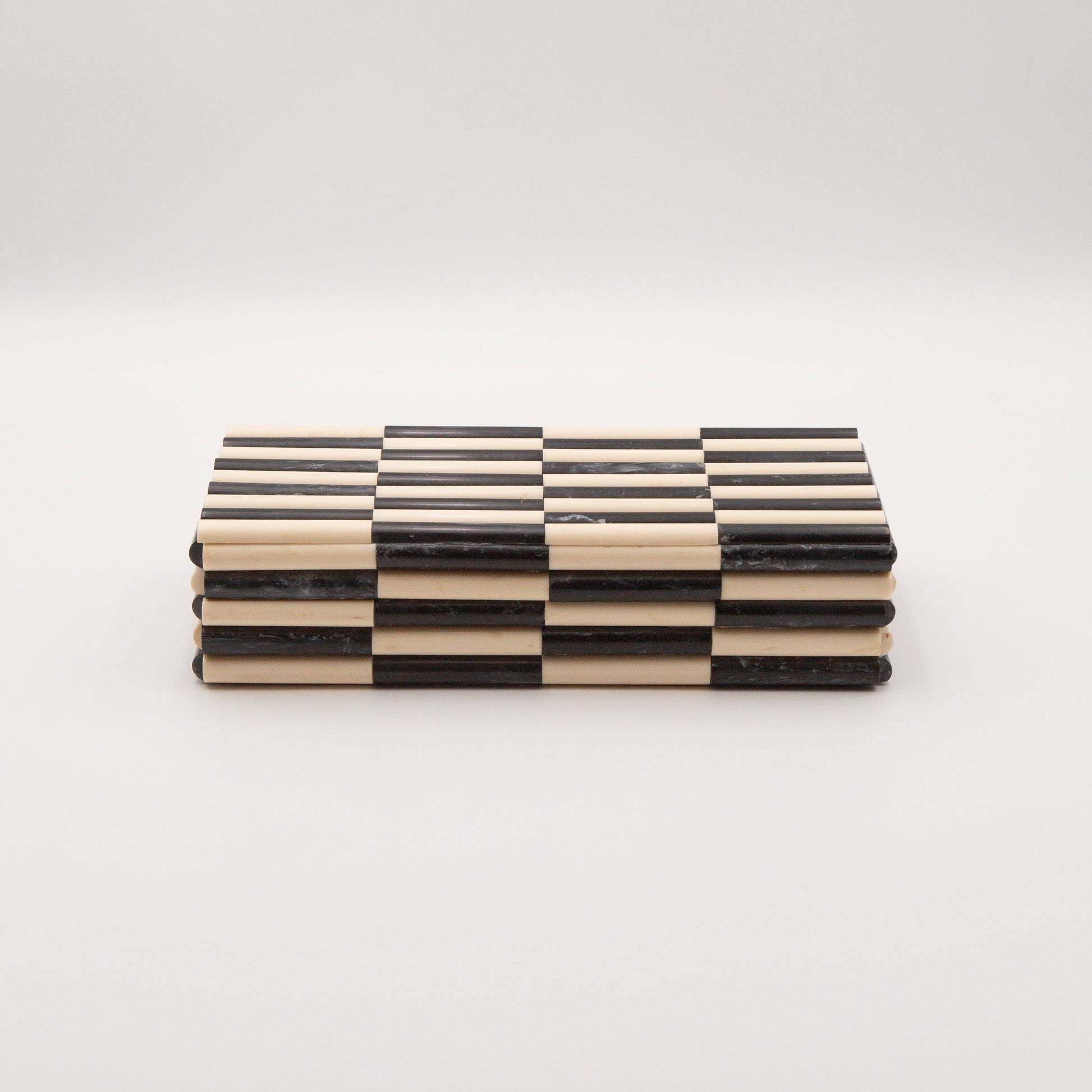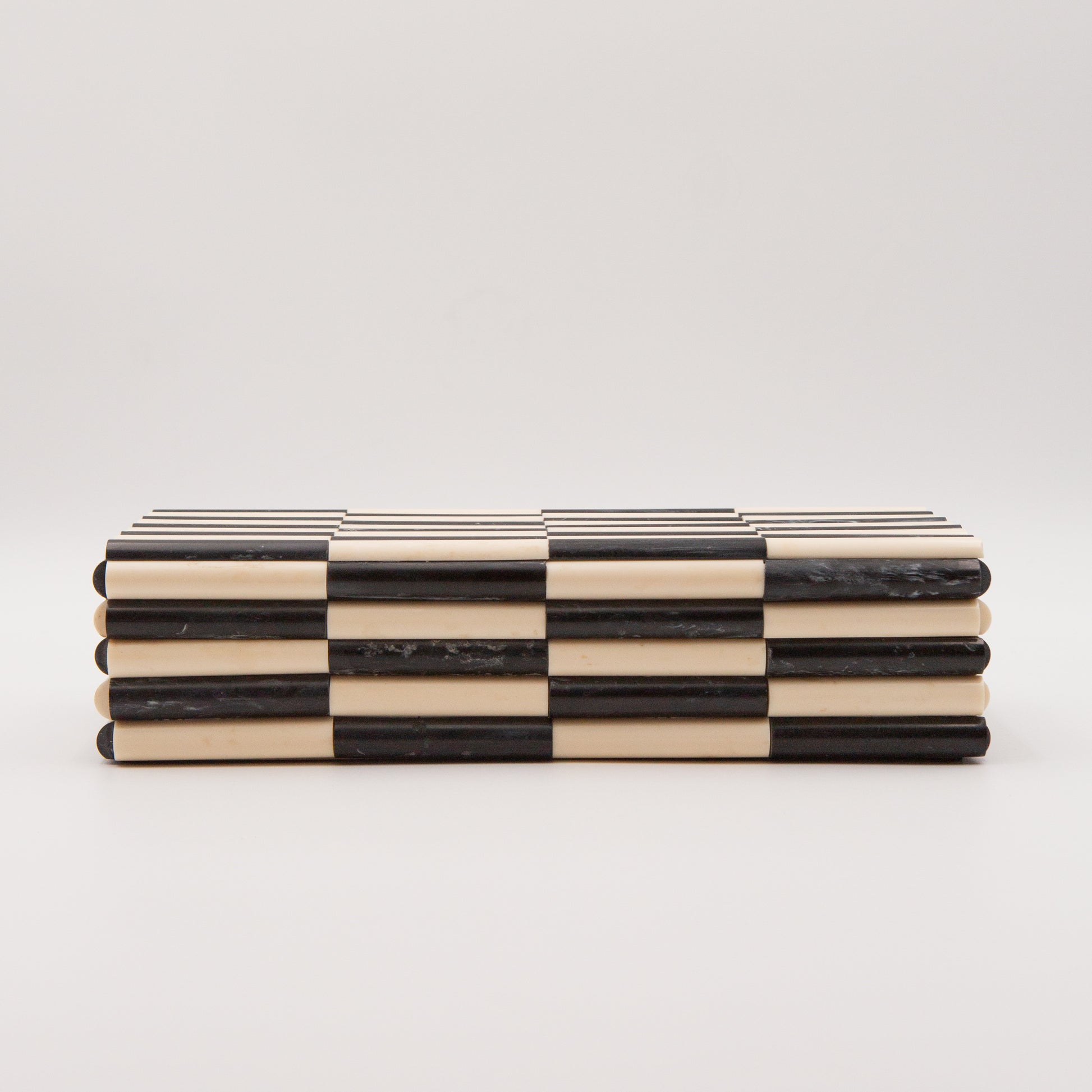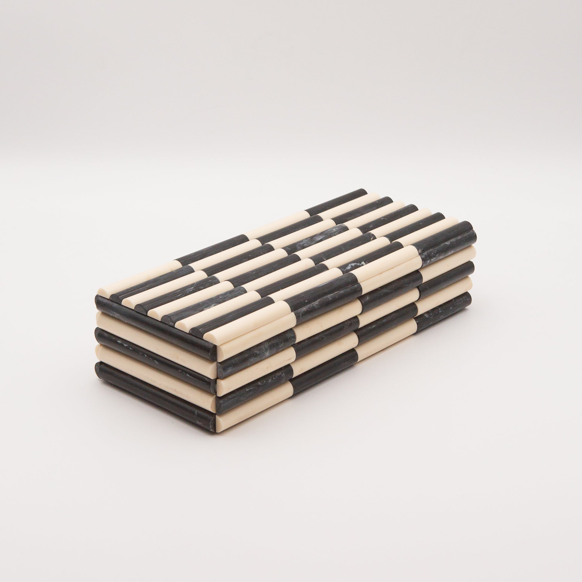 Three-dimensional fluted ivory and ebony bone decorative lidded box, handmade in the Valley of the Himalayas.