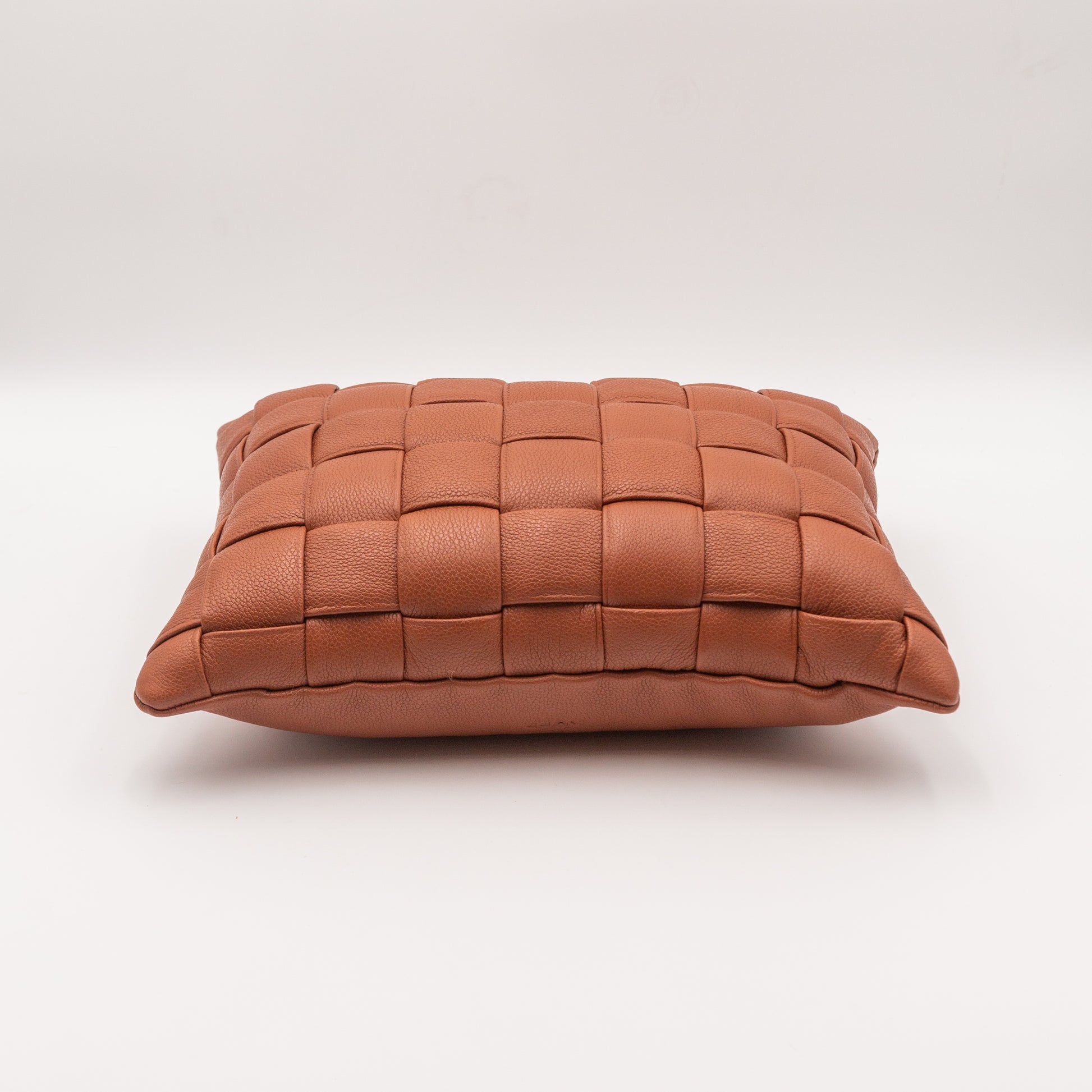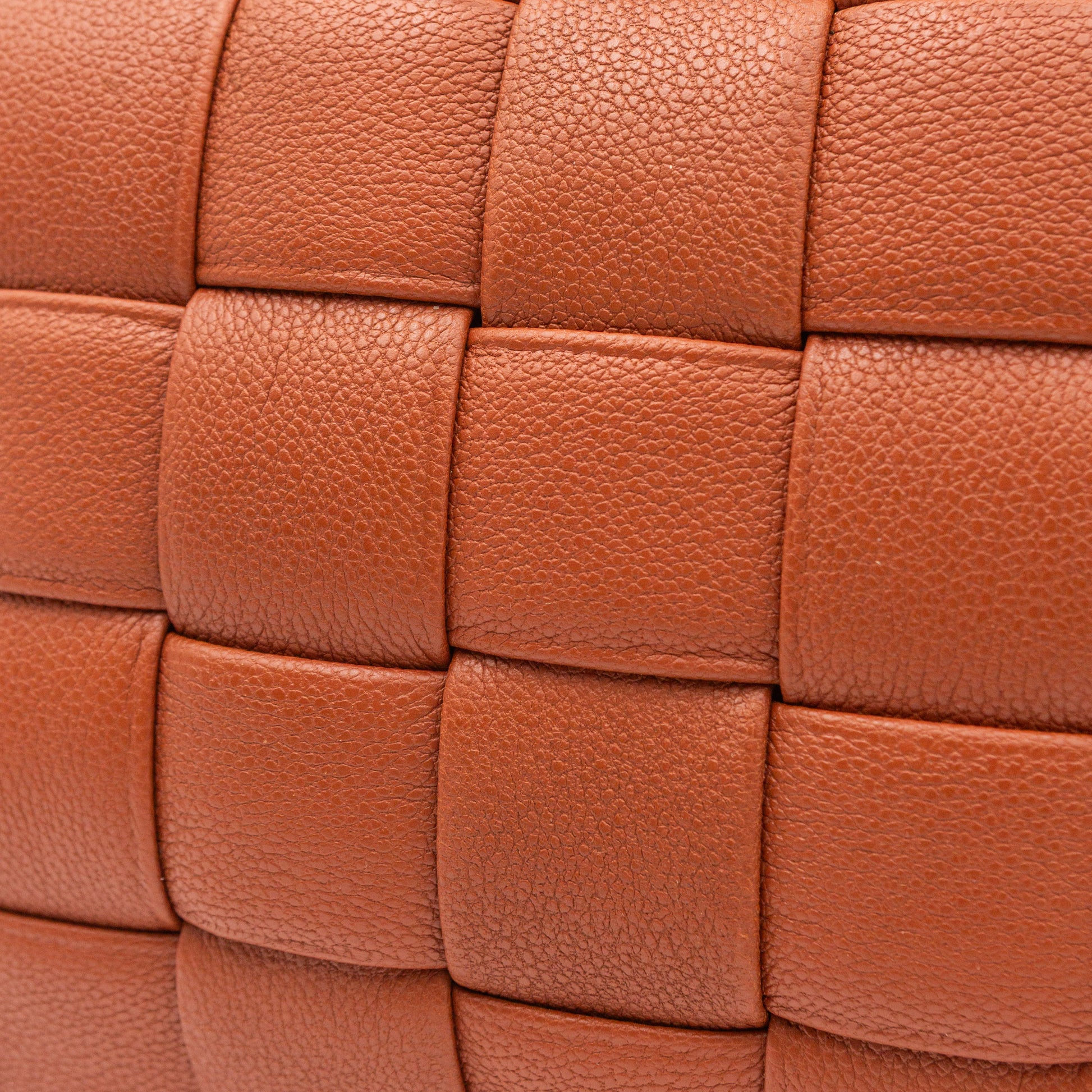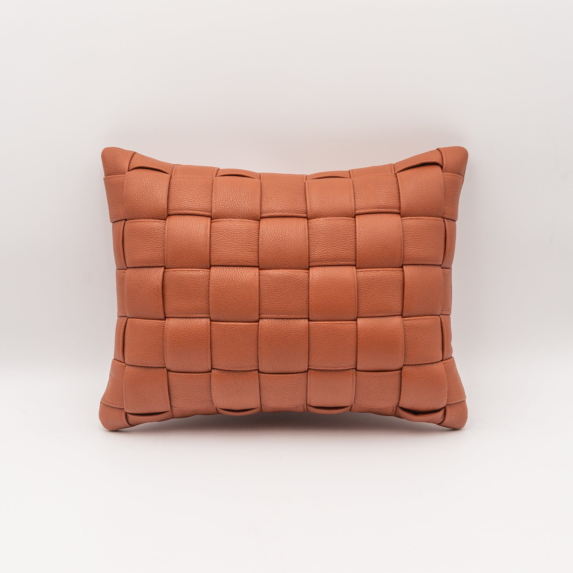 Rectangular woven leather accent pillow in cinnamon. Includes insert.